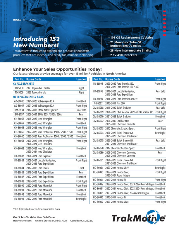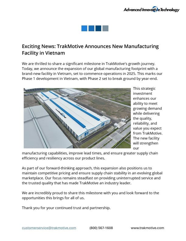 TrakMotive parts are manufactured in our state-of-the-art ISO 9001:2015 and IATF 16949.2016 facility and engineered to the highest quality standards in the industry.